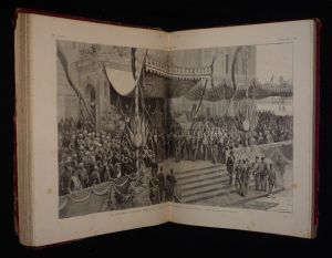 In-folio (27,5 x 37,5 cm), reliure demi-peau, dos lisse, 832 pages, complet de tous les numéros du n°1 du 4 janvier 1885 au n°52 du 27 décembre 1885 ; dos bruni, petites épidermures sur le...
