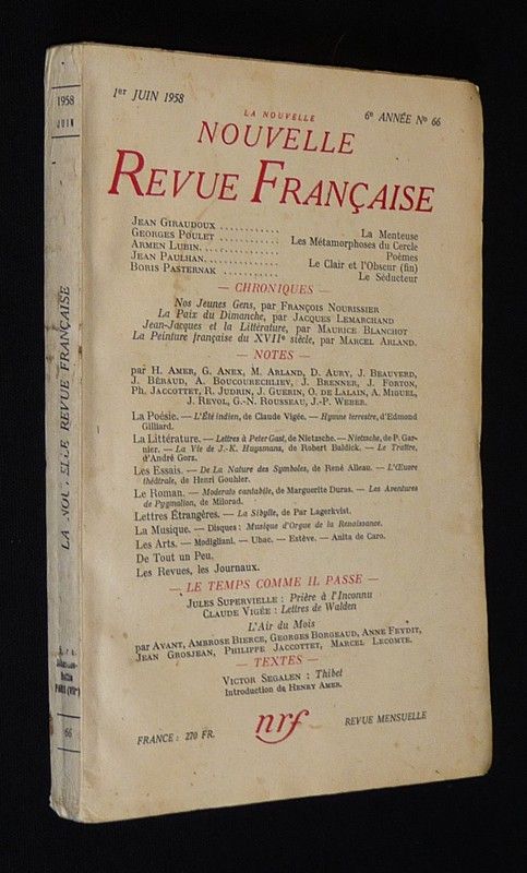 La Nouvelle Nouvelle Revue Française (6e année - n°66, 1er juin 1958)
