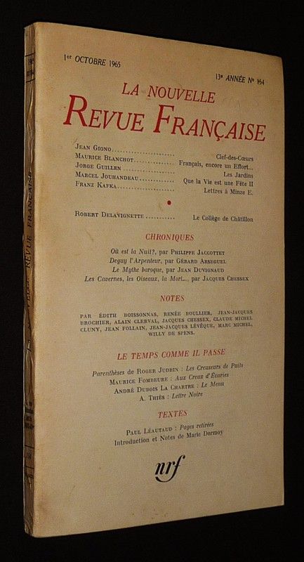 La Nouvelle Revue Française (13e année - n°154, 1er octobre 1965)