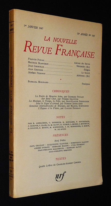 La Nouvelle Revue Française (16e année - n°181, 1er janvier 1968)