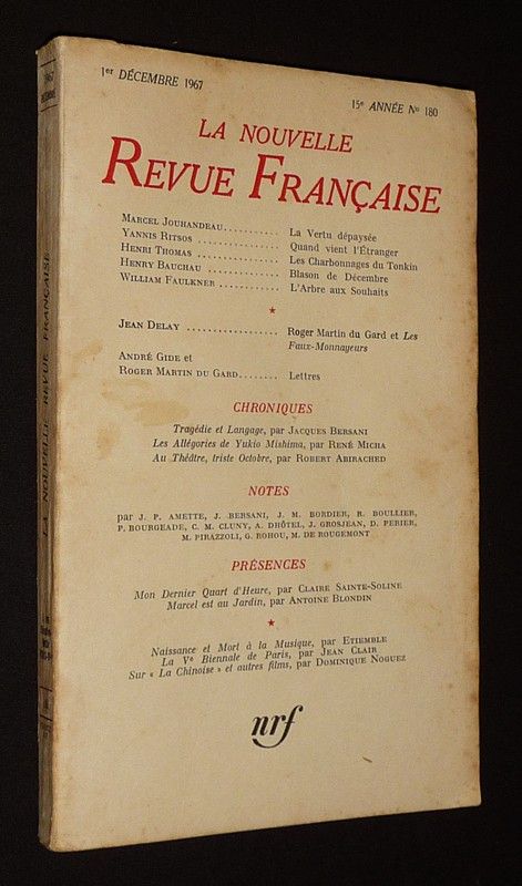 La Nouvelle Revue Française (15e année - n°180, 1er décembre 1967)