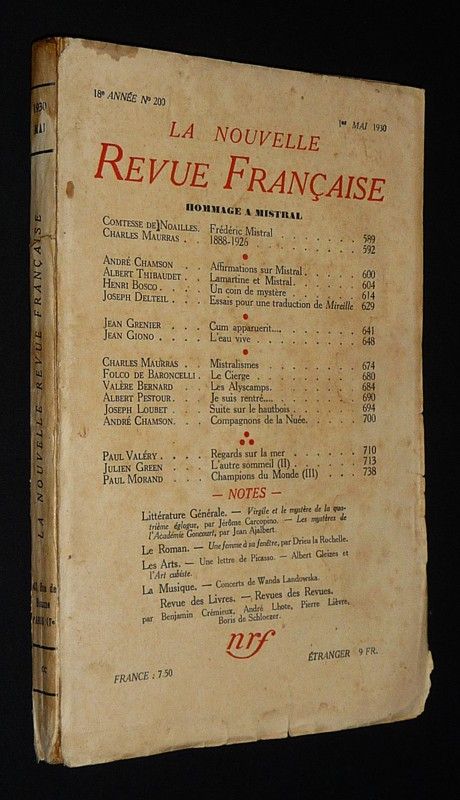 La Nouvelle Revue Française (18e année - n°200, 1er mai 1930) : Hommage à Mistral