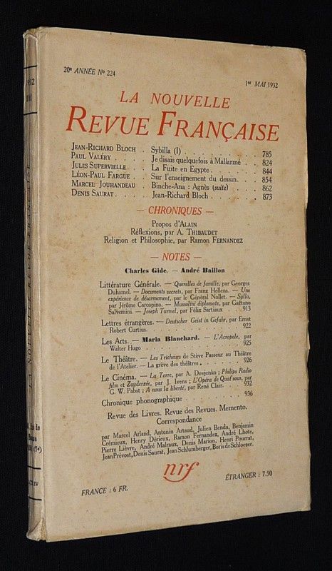 La Nouvelle Revue Française (20e année - n°224, 1er mai 1932)