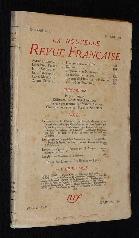 La Nouvelle Revue Française (22e année - n°251, 1er août 1934)