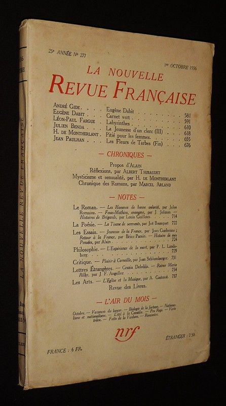 Détails La Nouvelle Revue Française (12e année - n°141, 1er septembre 1964)