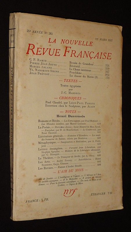 La Nouvelle Revue Française (25e année - n°282, 1er mars 1937)