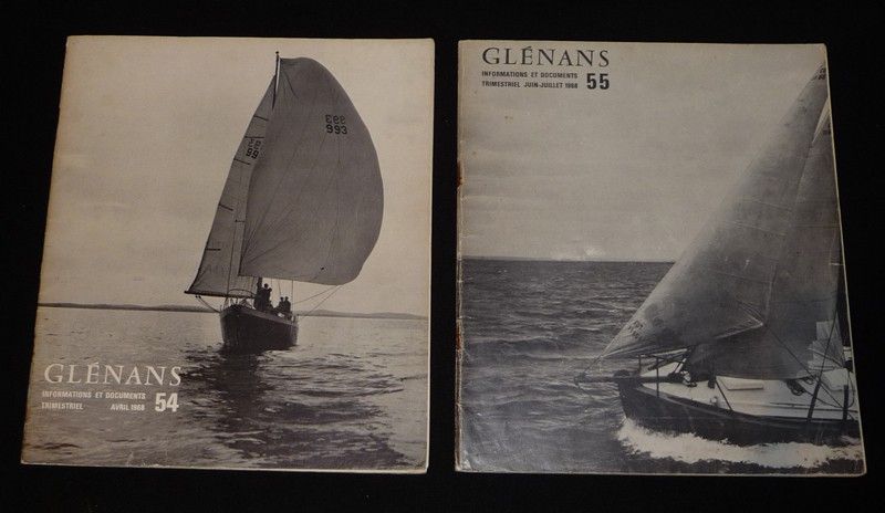 Deux volumes in-4 (21 x 24 cm), dos agrafé, 59 et 79 pages, n°54 (avril 1968) et n°55 (juin-juillet 1968) de la revue Glénans ; dos frottés, traces et marques d'usage sur les plats, trois coins et quelques pages cornés, état moyen.