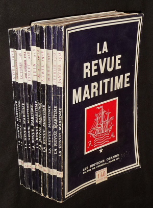 In-4 (15,5 x 24 cm), revue brochée, n°162 à n°172 de "La Revue maritime" soit l'année 1960 complète ; couvertures défraîchies, mors, coiffes et bords des plats frottés, pliures aux dos,...