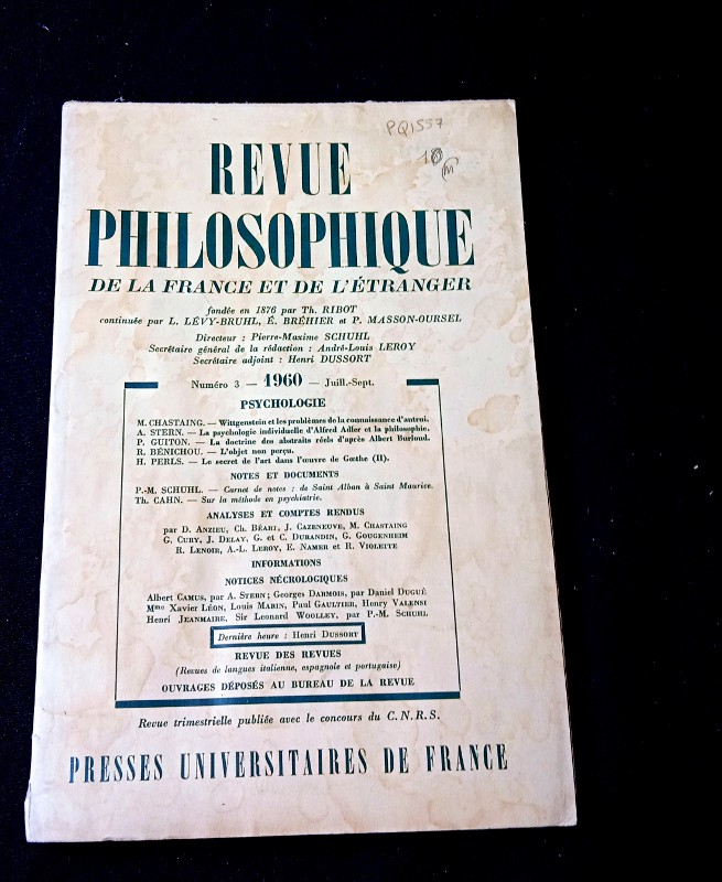 Revue philosophique de la France et de l'étranger, n° 3, juillet-sept. 1960