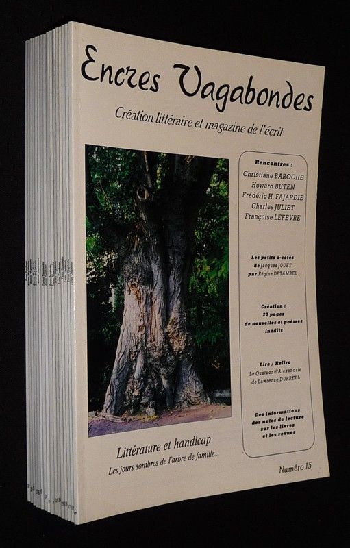 In-4 (21 x 29,7 cm), dos carré collé, lot de 16 numéros de la revue "Encres vagabondes", du n°15 (septembre-décembre 1998) au n°30 (2004) ; quelques traces sur les tranches, pliure au quatrième plat du n°24, par ailleurs bon état général.