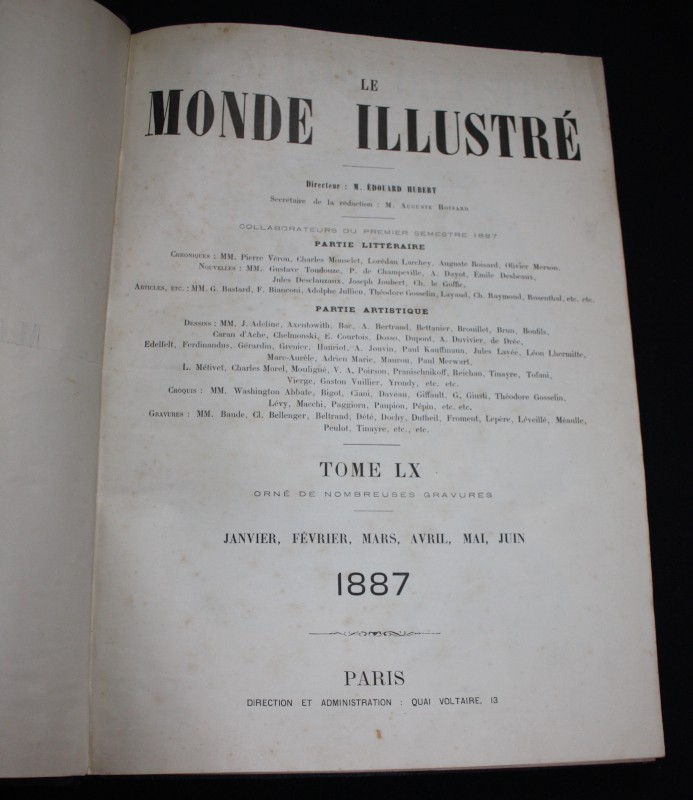 In folio relié, demi chagrin noir, du n°1553 du 1er janvier 1887 au n°1578 du 25 juin 1887, 422 pages, nombreuses gravures en noir et blanc in et hors texte ; reliure légèrement frottée, rares rousseurs, bel état.