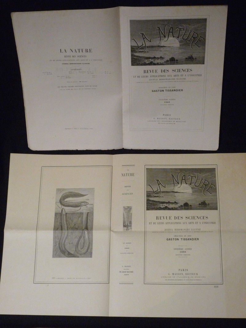 Index + chemise pour relier le 2e semestre 1888 (16e année) de la revue "La Nature" ; chemise pliée en deux dans la largeur, quelques légères rousseurs sur l'index, bon état général.