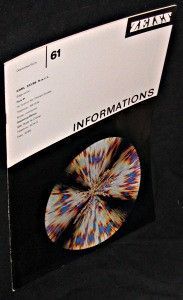 Revue in-4 agraffée, 33pp., nombreuses illustrations, Histoire des jumelles ZEISS ; Une nouvelle jumelle de poche 8*20 ; Le microscope électronique ZEISS EM 9 S ; Une métode de coloration pour...