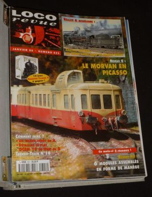 In-4 (23,5 x 30 cm), classeur toile écrue de l'éditeur contenant les 11 numéros de l'année 1999 de "Loco Revue", du n°621 au 631 ; très bon état général.