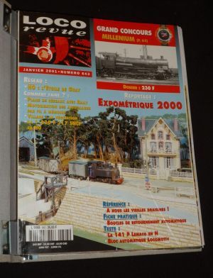 In-4 (23,5 x 30 cm), classeur toile écrue de l'éditeur contenant les 11 numéros de l'année 2001 de "Loco Revue", du n°643 au 653 ; très bon état général.