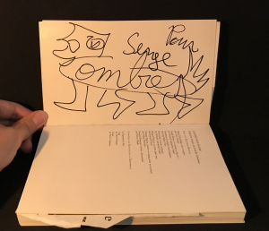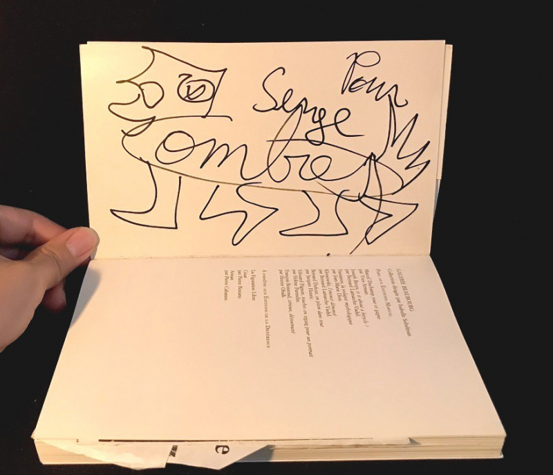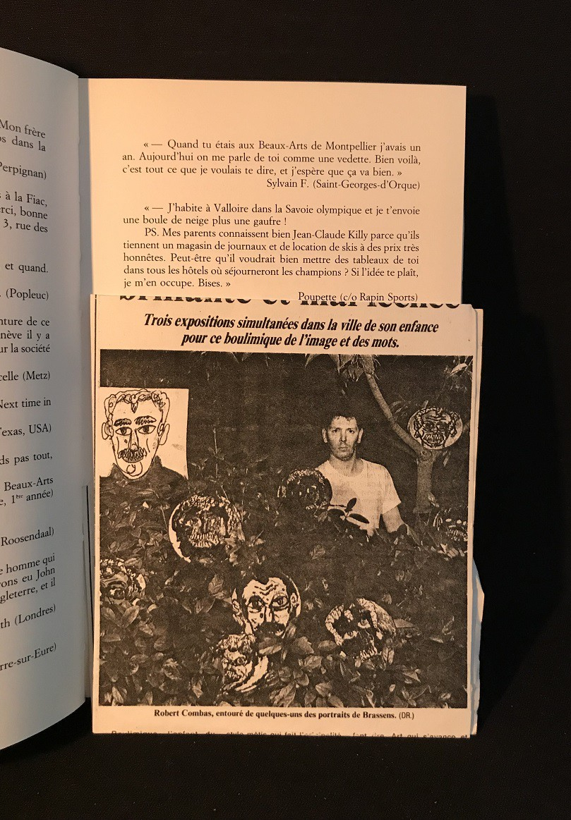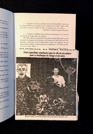 DESSIN ORIGINAL DE COMBAS PLEINE-PAGE DEDICACE ; In-8 (13 x 21 cm), broché, 187 pages, envoi autographe et dessin pleine-page de Robert Combas à Serge Tamagnot, truffé par Serge Tamagnot de plusieurs coupures de presse concernant Combas (Le Figaro, Le Point) ; très bel état.