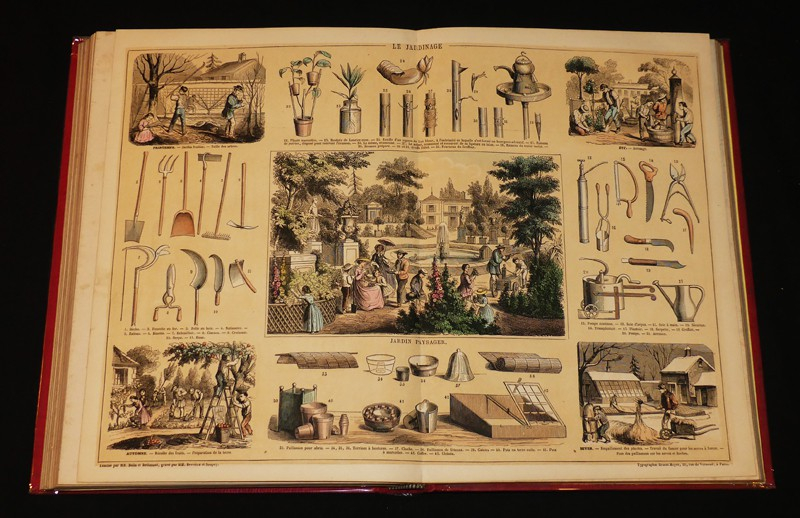 In-4 (31x21.5 cm), reliure de l'éditeur, plat à décor doré, tranches dorées, 246 pages, complet des 12 tableaux en couleurs montés sur onglets, illustrations en noir ; rousseurs, par ailleurs bon état.