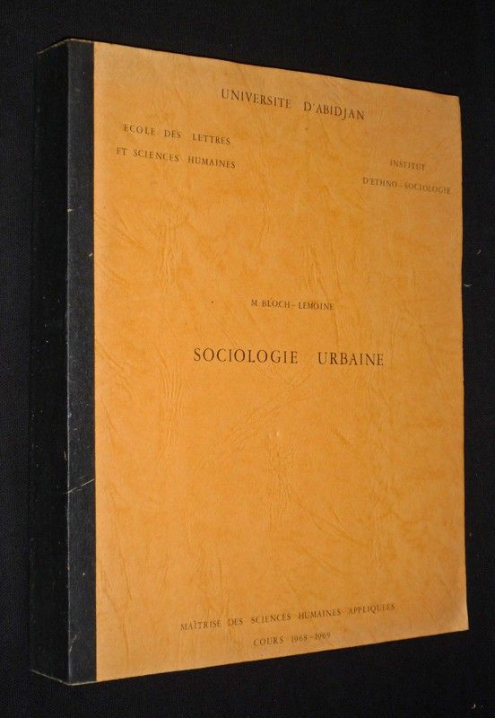 In-4 (20,8 x 26,4 cm), dos carré collé, 224 pages + bibliographie 15 pages, ouvrage tapuscrit, cours 1968-1969 de sociologie urbaine pour la maîtrise des sciences humaines appliquées de l'université d'Abidjan ; quelques rousseurs sur les tranches et la page de titre, marques d'usage sur la bande thermocollée au dos, par ailleurs bon état général.