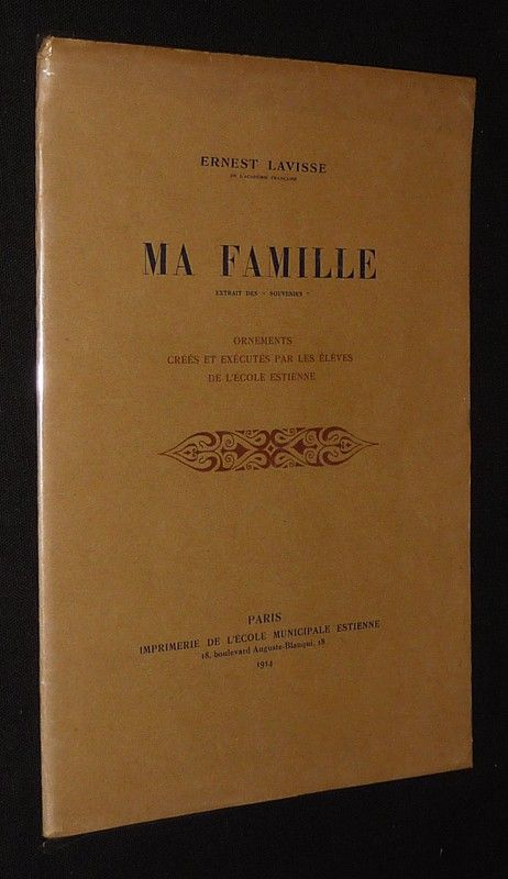 in-4 (19,5 x 29 cm), feuilles sous couverture, 24 pages, extrait des "Souvenirs" édités par Calmann Lévy, ornements créés et exécutés par les élèves de l'école Estienne ; quelques incidents sur le bord supérieur des plats, rousseurs sur les premières pages, par ailleurs bon état général.