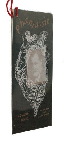 In-12 (10x21 cm), brochure reliée à la coiffe supérieure par une cordelette, 1er plat illustré sous feuille transparente, présentation de la pièce de théâtre mise en scène par Claude Esnault d'après Sigmund Freud ; bon état.