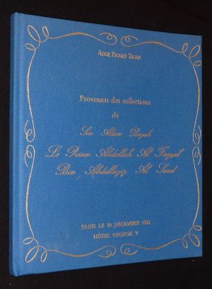 PEU COMMUN. In-4 (28 x 32,5 cm), reliure demi-toile, 257 pages, "Catalogue des objets d'art et de haute curiosité de l'Antiquité, du Moyen Age et de la Renaissance : Faïences, bijoux, orfèvrerie, ivoires, émaux champlevés et peints. Antiques - Sculptures - Cuivres, sièges en tapisserie et meubles du XVIIe siècle, étoffes, tapisseries, tableaux anciens : primitifs des écoles allemande, flamande, hollandaise et italienne, oeuvres de Bakhuysen, S. Coello, L. Cranach, El Greco, le maître des demi figures, Q. Metsys, L. Moralès, Patenier, Le Pontormo, C. de Sesto, J.-B. Tiepolo, R. van den Weyden, composant la collection de M. D. Schevitch" (vente des 4, 5, 6 et 7 avril 1906) ; premier plat désolidarisé de l'ouvrage, plats incurvés, mouillure au quatrième plat, coupes frottées, par ailleurs intérieur bien conservé, en l'état.