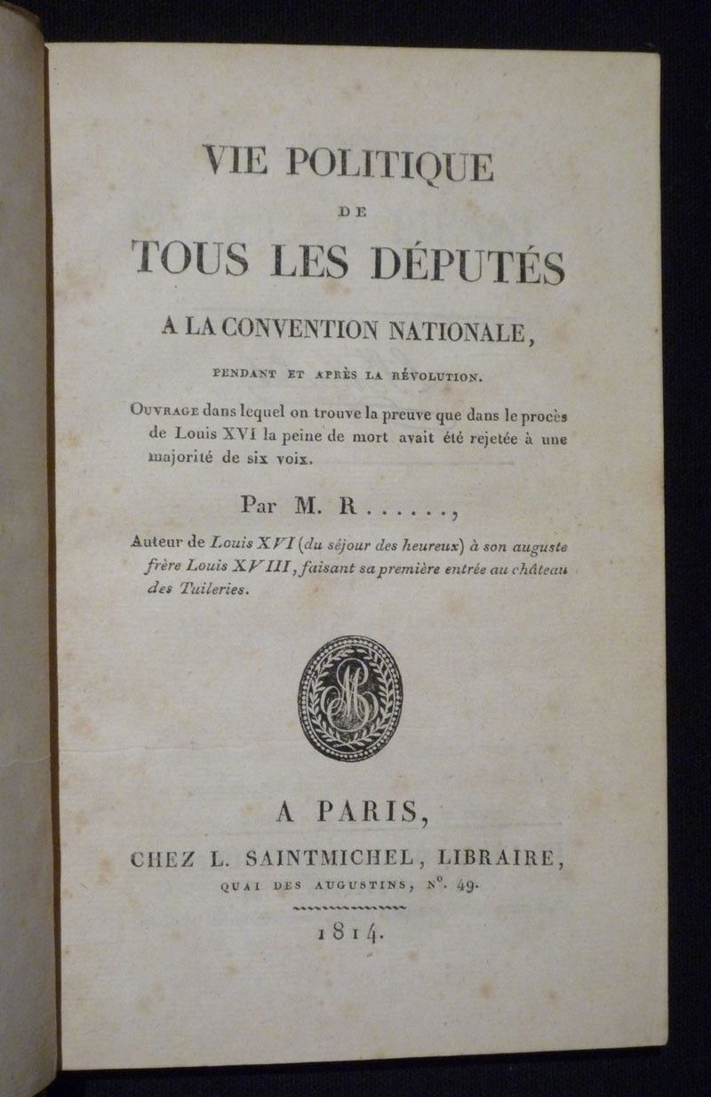 Trois volumes in-8 (15,7 x 23 cm), reliure demi-chagrin, dos à 4 nerfs, ouvrage complet en trois tomes : Tome 1 : La Constituante (XV-566 pp.), Tome 2 : Les Girondins (III-730 pp.), Tome 3 : La...