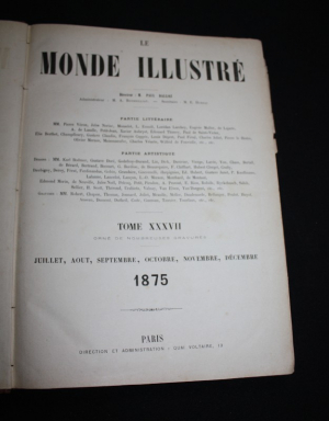 Deux volumes in folio relié, demi chagrin brun, 5 nerfs, fleurons dorés, du n°925 du 2 janvier 1875 au n°976 du 25 décembre 1875, 412+420 pages, nombreuses gravures en noir et blanc in et hors texte ; reliure légèrement frottée, rares rousseurs, bon état.
